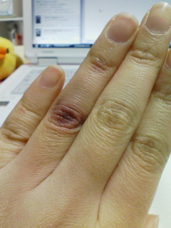 で、バイト終わってしばらくは指をぶつけた事さえ忘れていたのですが(都合のいい脳みそ)、今見てみたら